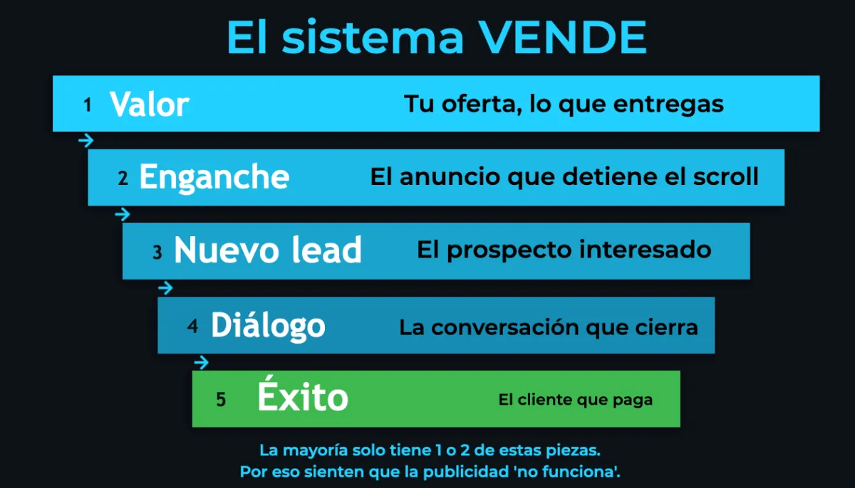 Este curso es una extensión directa de ese enfoque. En 4 semanas implementarás el sistema VENDE.